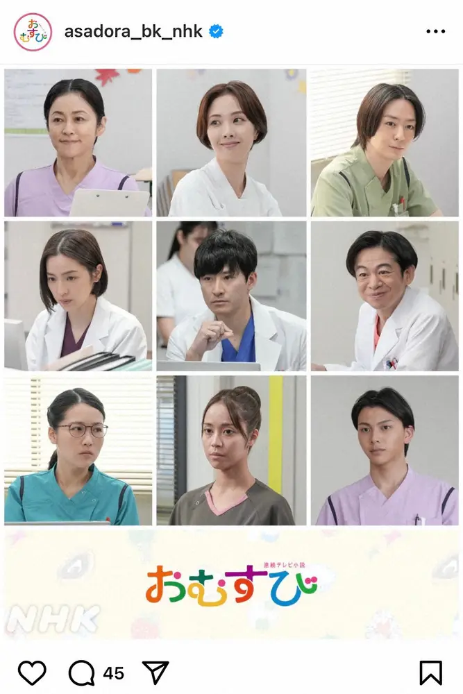「朝ドラ『おむすび』新たな出演者の発表 平成から令和へ 病院・管理栄養士編」とコメントし、9人の新たな出演者らの写真を公開。