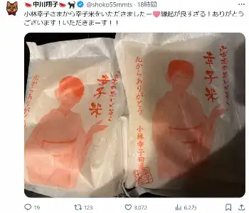 パッケージには「山古志の思いが届く 幸子米 心からありがとう 小林幸子田産」とつづられており、中川は「縁起が良すぎる!ありがとうございます!いただきまーす!!」と感謝を述べた。