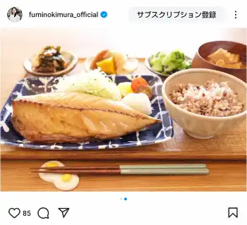 日々の手料理を自身のインスタグラムで披露している木村。この日も「カネタ前田商店さんのサバ キャベ千サラダ、トマト、おろし タコとわかめの酢のもの さつま揚げと白滝の煮物with煮かぼちゃ 青梗菜とシラスのごまナムル風 厚揚げとサツマイモのおみそ汁 雑穀米ごはん」と、献立を紹介した。