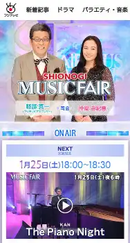 前週18日の放送では、番組冒頭に画面左上に赤い文字の「SHIONOGI」、白字の「MUSIC FAIR」番組ロゴが表示されていた。