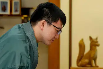 <ALSOK杯第74期王将戦第二局第1日>対局室へ向かう永瀬九段(撮影・会津 智海)