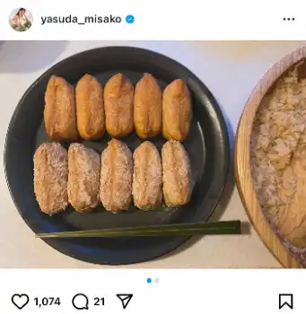 続けて「朝ごはんは、お稲荷さんにしました!炊いてあるお揚げを買ってきて…赤酢の酢飯にしました。多めに作って、晩ごはんまで持たせる」とし「男子たちの食べる量が増えてきたから、毎日の献立に悩む毎日!!ごはん、タンパク質がとにかく大事。大きくなってきたー」と子供の成長を実感した。