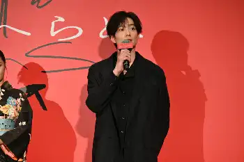 主演の広瀬すず(26)演じる新進女優に心を奪われていく文芸評論家役で、昨年11月に女優の高畑充希(33)との結婚を発表してから初の公の場。