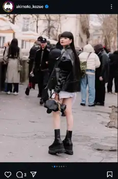 ファッションウイークに合わせてフランス・パリを訪れている秋元は「sacai」とつづり、超ミニのファッションで街歩きをしているショットなどをアップした。