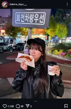 「韓国どこにでもカフェあるのいいな~このいちごのワッフル美味しかった クレープとかパフェとかもそうだけどバナナといちごでいつも迷っちゃう みんなはどっち派??」とつづり、黒で統一したキャップ、ジャンバー、ミニスカート、ソックス、ブーツ姿でワッフルを手にしている写真をアップ。ハッシュタグで「韓国旅行」「ヌテラ」「キャップコーデ」などと添えた。