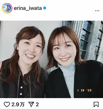 日テレ・岩田絵里奈アナ 高校・大学も同じ…先輩アナとのツ-ショット公開「みとさんと。たのしかった~」