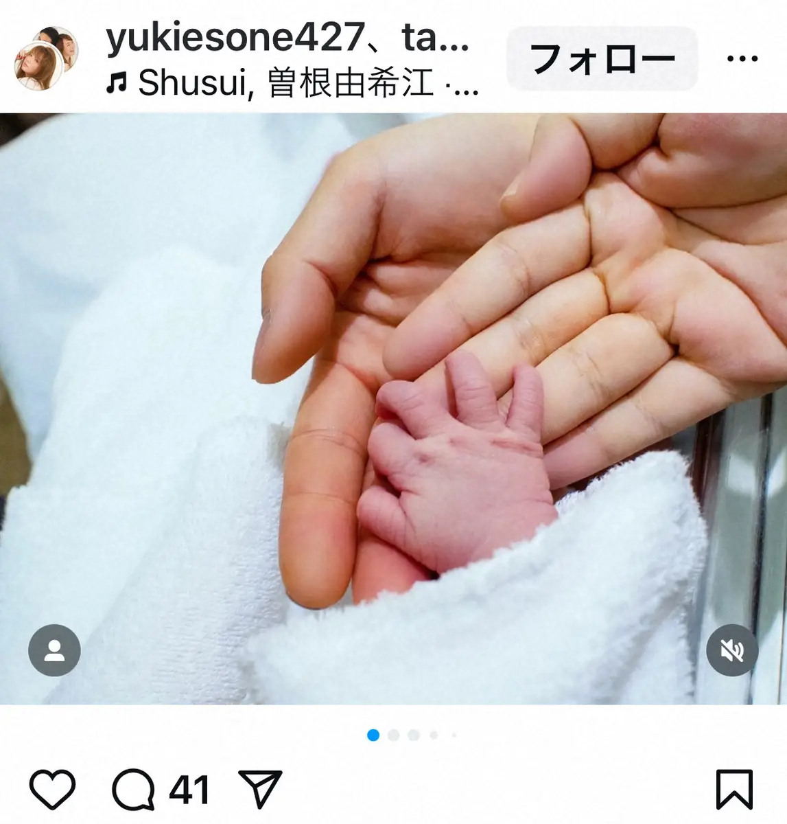 曽根由希江公式インスタグラム(@yukiesone427)より 39歳元「ブランチ」リポーターが第1子男児出産発表 あだ名は“トラちゃん”… ギャラリーで見る この記事のフォト 2025年02月01日の画像一覧 もっと見る 2025年02月01日の画像をもっと見る