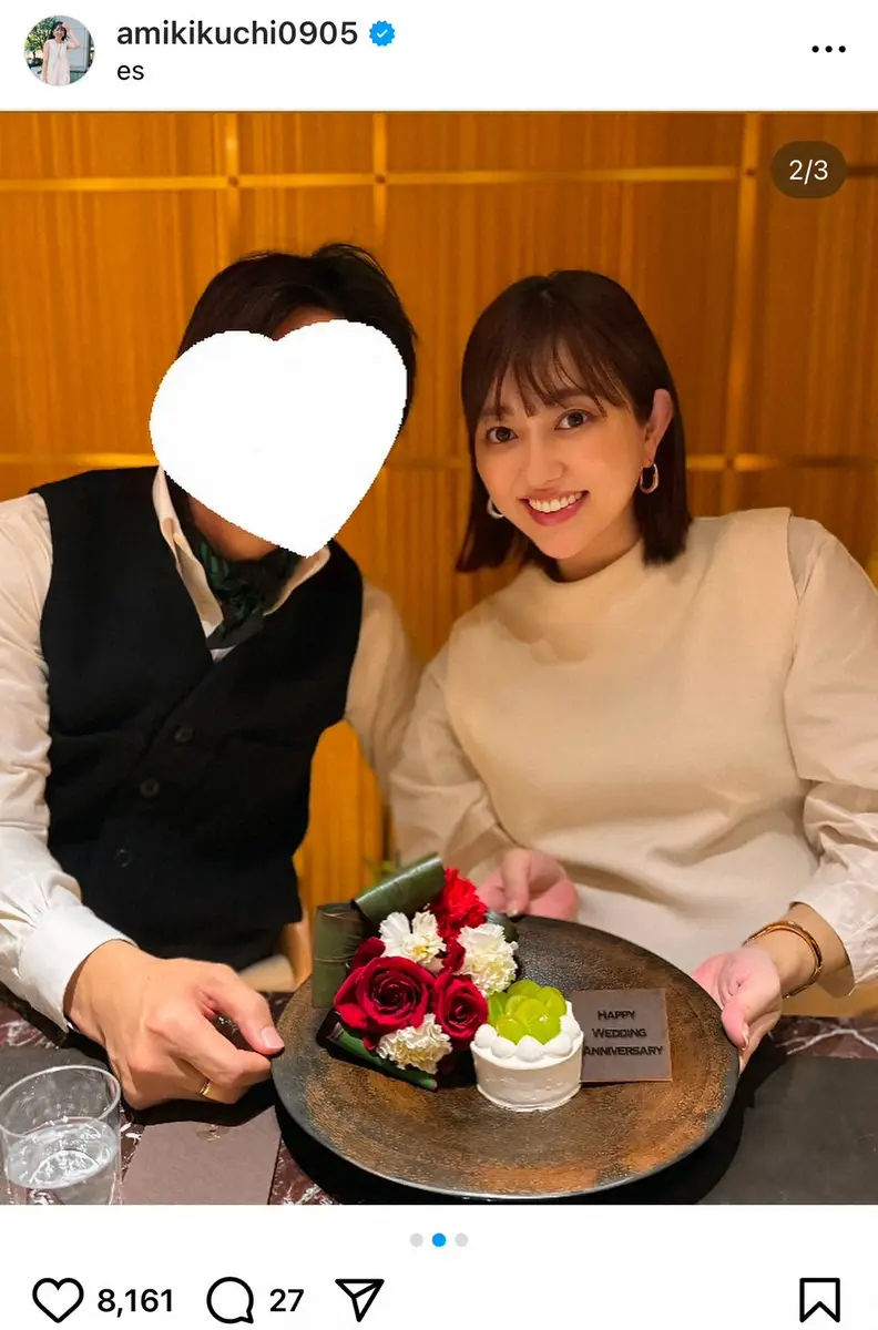 第2子妊娠中のタレントの菊地亜美(34)が2日に自身のインスタグラムを更新。7回目の結婚記念日を迎えたことを報告した。
