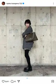 長谷川は「The other day(=先日のこと)」と切り出し、「しかし今日は寒いですね」とコメント。グレーのジャケットにレオパード柄のミニ丈と黒タイツを合わせ、ポーズを取った写真を公開した。