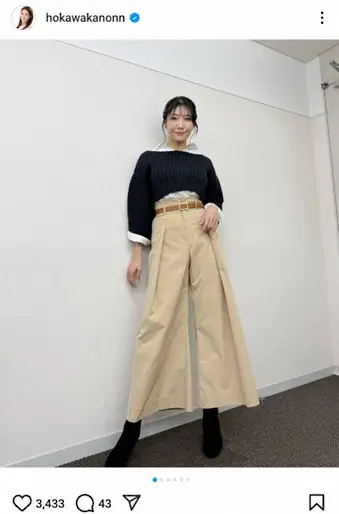 “美しすぎる気象予報士”穂川果音 パンツコーデ披露に「相変わらず脚長ステキ」「ほかのん天使降臨~」