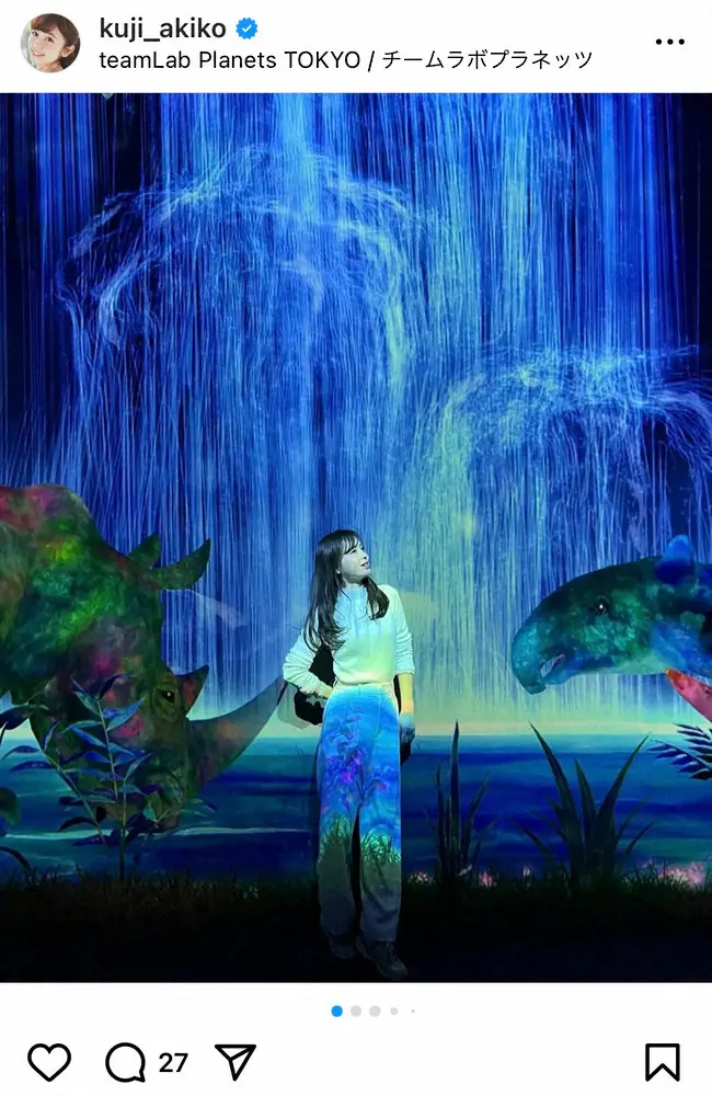 元フジテレビアナウンサーのタレント・久慈暁子(30)が5日までに、自身のインスタグラムを更新。「チームラボ」の新エリアを訪れたことを明かした。