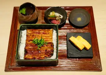<ALSOK杯第74期王将戦第3局・第1日>永瀬拓矢九段の昼食、うな丼(撮影・大城 有生希)