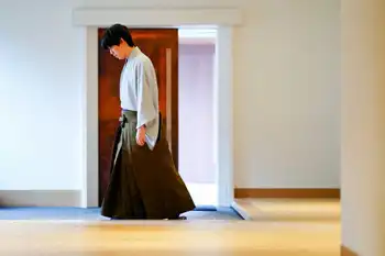 <ALSOK杯第74期王将戦第3局第1日>昼食休憩を終え対局室へ戻る藤井王将(撮影・会津 智海)