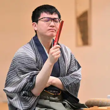 <ALSOK杯第74期王将戦第3局・第1日>眼鏡を拭く永瀬拓矢九段(撮影・大城 有生希)
