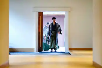 <ALSOK杯第74期王将戦第3局第1日>昼休憩を終え対局室に戻る永瀬九段(撮影・藤山 由理)