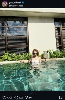 SKE48の元メンバーでタレントの三上悠亜(31)が7日までに自身のインスタグラムを更新。沖縄でのプール・ショットを公開した。