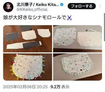 北川景子 Photo by スポニチ 北川景子 4歳娘に「大好きなシナモロールで」水色ポシェット手作りに「素… ギャラリーで見る この記事のフォト 2025年02月08日の画像一覧 もっと見る 2025年02月08日の画像をもっと見る