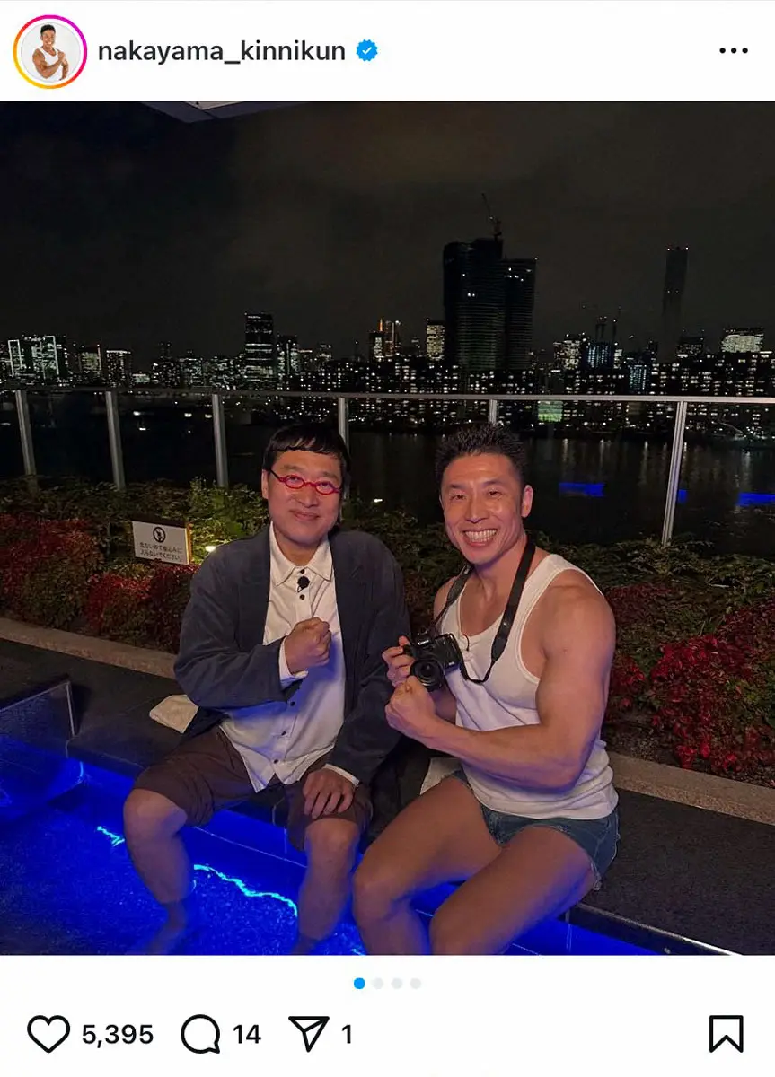 お笑いタレントのなかやまきんに君(46)が8日、自身のインスタグラムを更新。大阪NSC同期のお笑いコンビ「南海キャンディーズ」の山里亮太(47)とのツーショットを公開した。