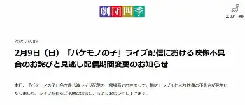 劇団四季の公演ライブ配信で機材トラブル発生 映像に不具合で謝罪「心よりお詫び申し上げます」