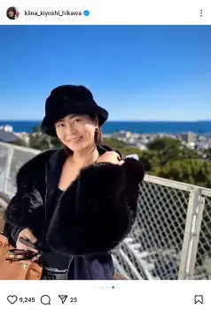 氷川は「今日は大好きな町小田原へ」と、車の絵文字を添えて報告。「初、念願の小田原城」と、黒いボアの帽子とサングラス姿の写真や、ファーコートでバッグを持った屋外での写真などを公開した。