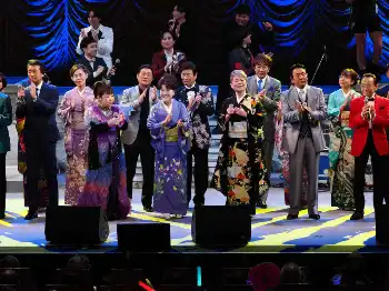 NHK紅白歌合戦の出場経験豊富な演歌歌手だけではなく、テノール歌手の秋川雅史(57)や3人組「BEGIN」など総勢53組64人による豪華ステージ。