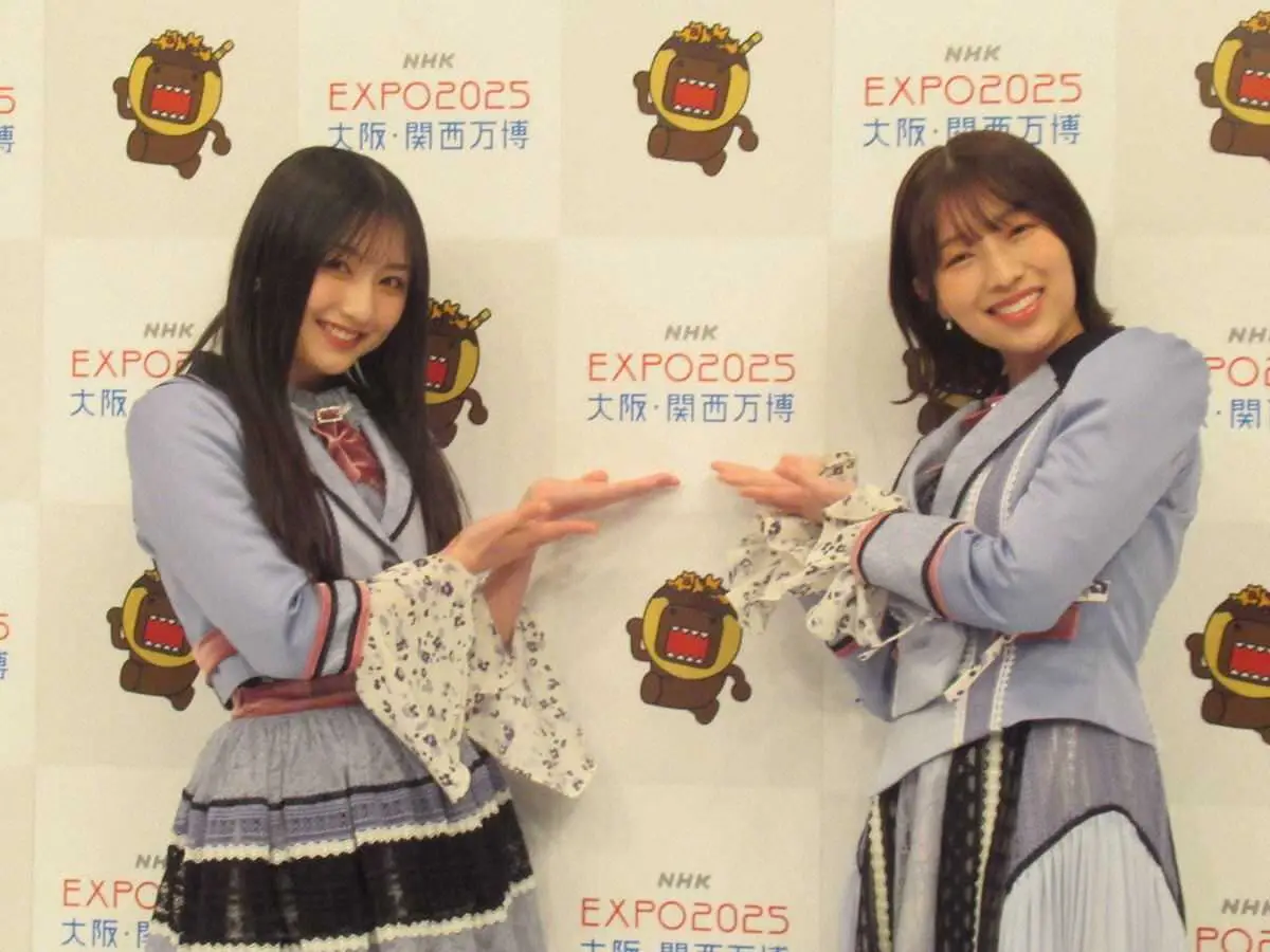 NHK特番「万博1か月前!生放送スペシャル」をPRするNMB48の塩月希依音(左)、安部若菜