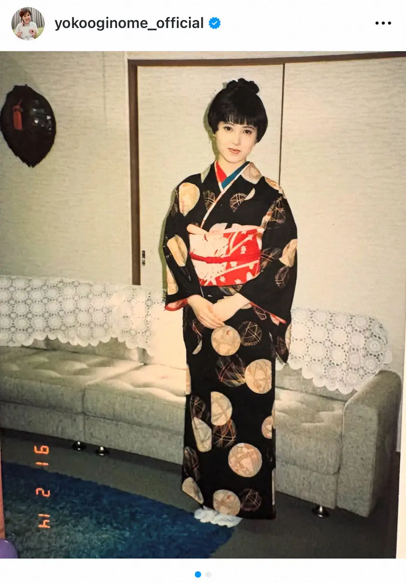 歌手の荻野目洋子(56)が13日、自身のインスタグラムを更新。34年前の着物ショットを披露した。