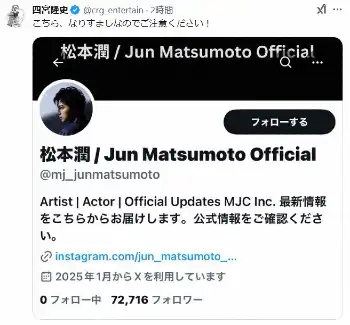 松本潤のXアカウントは「なりすまし」 四宮社長が発表 公式を名乗り一晩でフォロワー約8万人も…