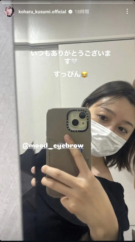 ストーリーに黒のニット姿でマスクをし、自撮りをするショットをアップ。
