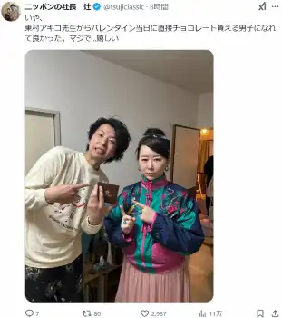 ニッポンの社長・辻 人気漫画家からのバレンタインチョコに大喜び「マジで…嬉しい」ネット羨望の声