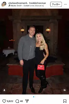 フリーマンの元モデル妻 夫とラブラブバレンタインS!黒タイトコーデに「お似合い」「なんて美しい」反響