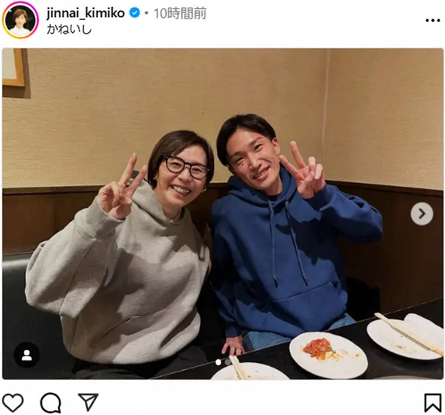 陣内貴美子 同じ髪形?桃田賢斗との2ショット公開「何はともあれ、元気そうでした」近況伝える