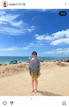 タレントの千秋が15日、自身のインスタグラムを更新。ハワイ滞在の様子を報告し、「初水着姿」も披露している。