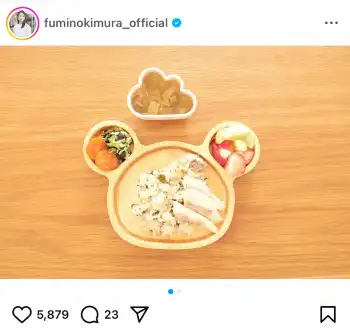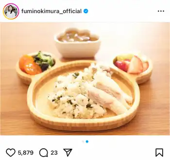 日々の手料理を自身のインスタグラムに投稿している木村。この日は「チビうさごはん」と書き出し、「わかめご飯、焼売、タイの塩焼き、小松菜とシラスの海苔和え、トマト、キャベツとナスのおみそ汁、いちご、マスカット」と我が子への品数たっぷりの手料理を紹介した。