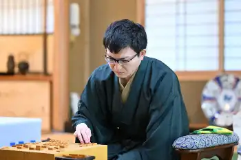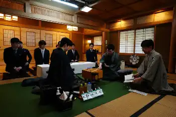 <ALSOK杯第74期王将戦第4局・第2日>封じ手を指す永瀬九段(右から2人目)(撮影・大城 有生希)