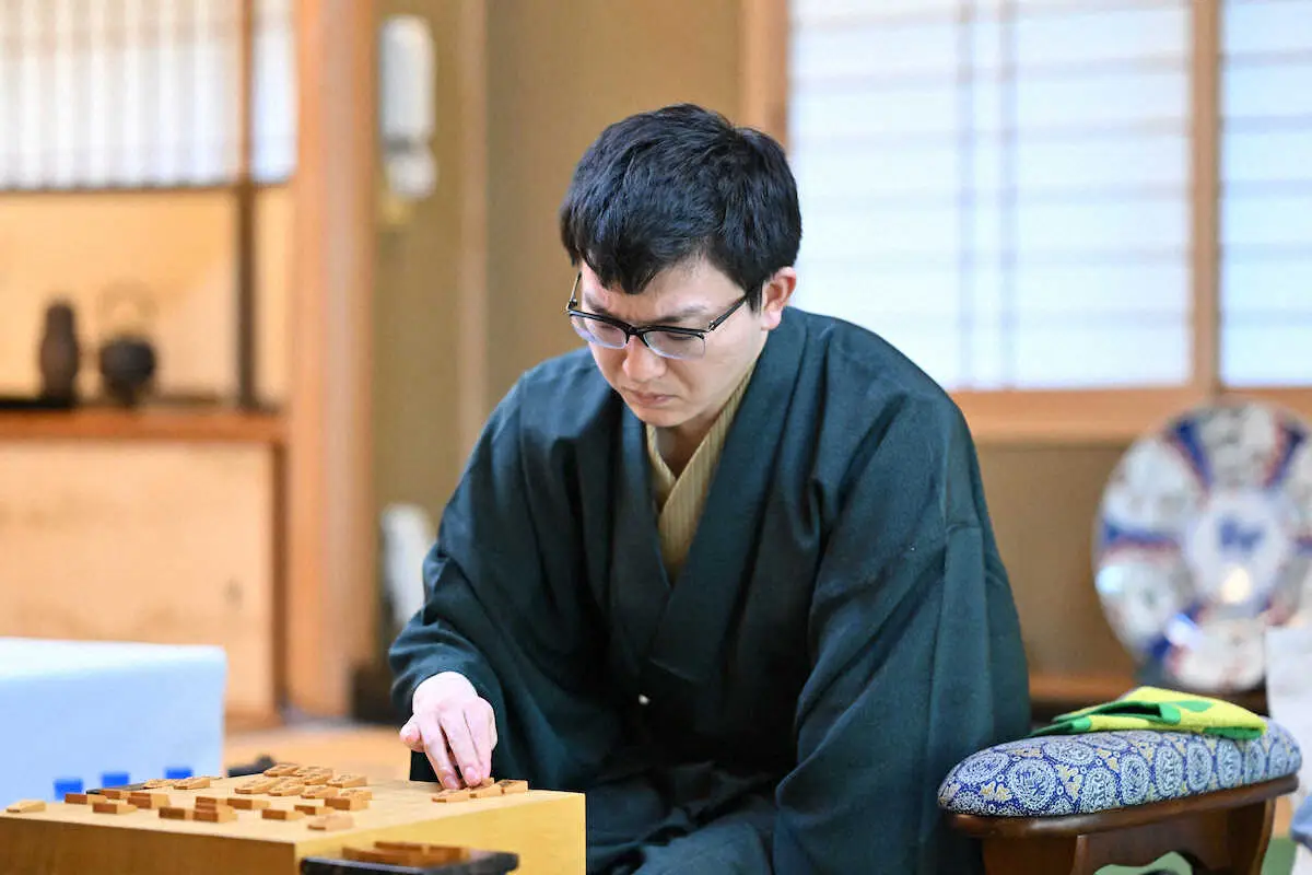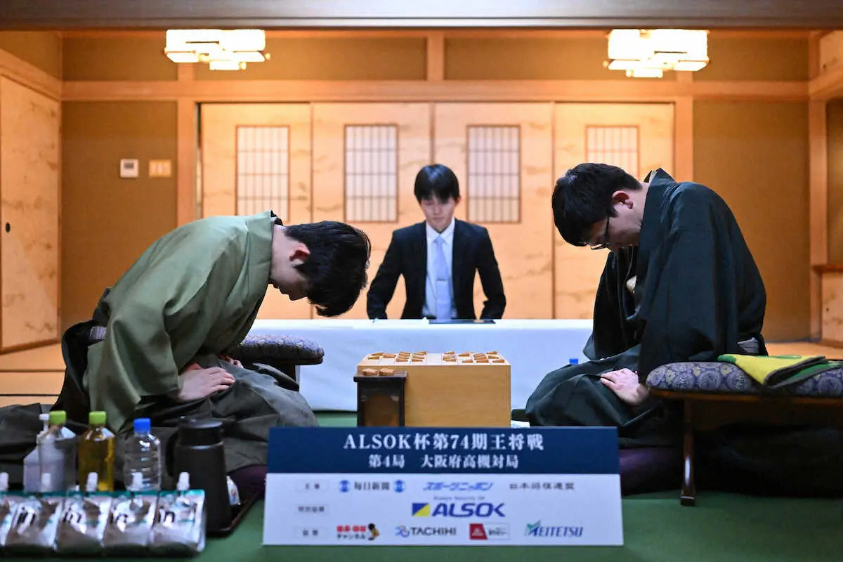 <ALSOK杯第74期王将戦第4局2日目>投了する藤井王将(左)