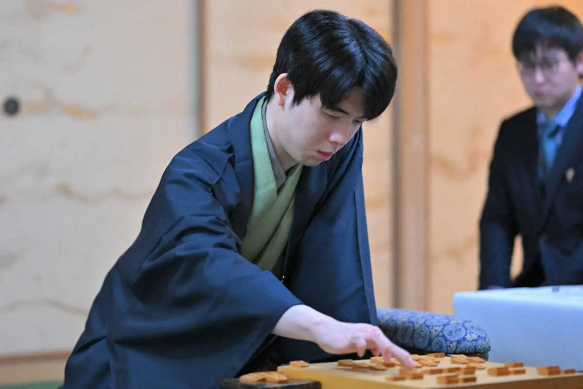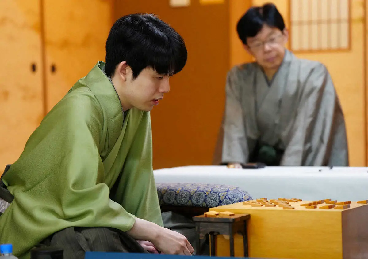 <ALSOK杯第74期王将戦第4局2日目>投了する藤井王将(左)