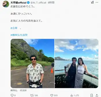 美男美女ぞろいの4人の子供たちも俳優、モデルとして芸能界で活躍している。長女の天翔愛は自身のX(旧ツイッター)で「お誕生日おめでとう。永遠にかっこいい。お気に入りの写真を添えて」と父との海辺でのツーショットをアップした。