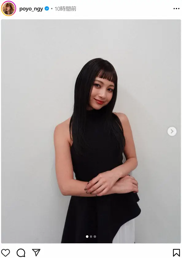 前髪をぱっつんカットにした他、全体を黒にカラーリングし、見事にイメチェン。インスタグラムでも、落ち着いた印象の新たな姿を公開すると「New me ぐるナイありがとうございました 学生ぶりの前髪ぱっつん!!!みんなが褒めてくれて嬉しい」と振り返った。