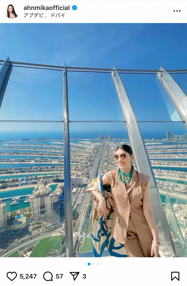 モデルでタレントのアンミカ(52)が21日までに自身のインスタグラムを更新。仕事で訪れたアラブ首長国連邦のドバイの超高級ホテルに宿泊したことを報告した。