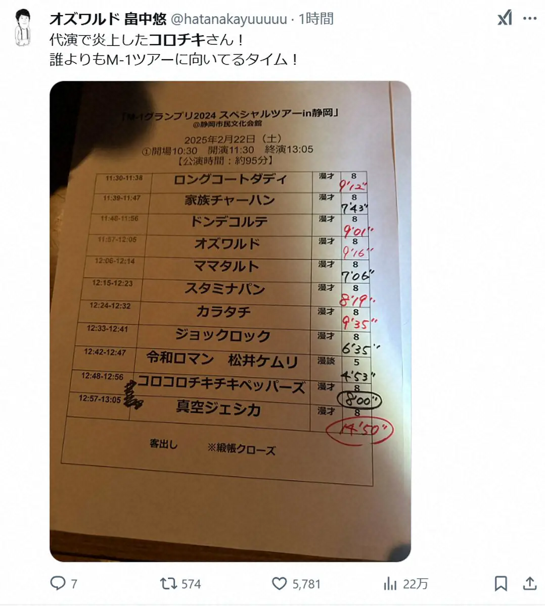「オズワルド」畠中悠 Photo by スポニチ オズワルド畠中 令和ロマン代役で“炎上”コロチキを称賛「誰よりもM-1ツア… ギャラリーで見る この記事のフォト 2025年02月22日の画像一覧 もっと見る 2025年02月22日の画像をもっと見る