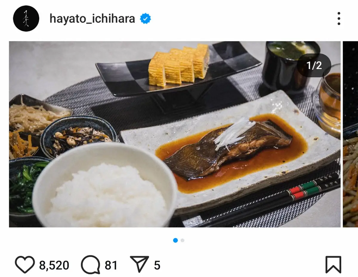 フォロワーからは「料理もお箸も素敵すぎます」「美味しそう」「素晴らしい」「とても素敵で食べたいです」「甘利田先生、自炊上手ですね」「本当になにもかも男前過ぎて大好きすぎます」と、料理の素晴らしさと共に、市原が出演しているドラマ&映画「おいしい給食」で演じた教師・甘利田幸男が愛用していた輪島塗りの高級マイ箸を実生活でも使用していることへの声も多かった。