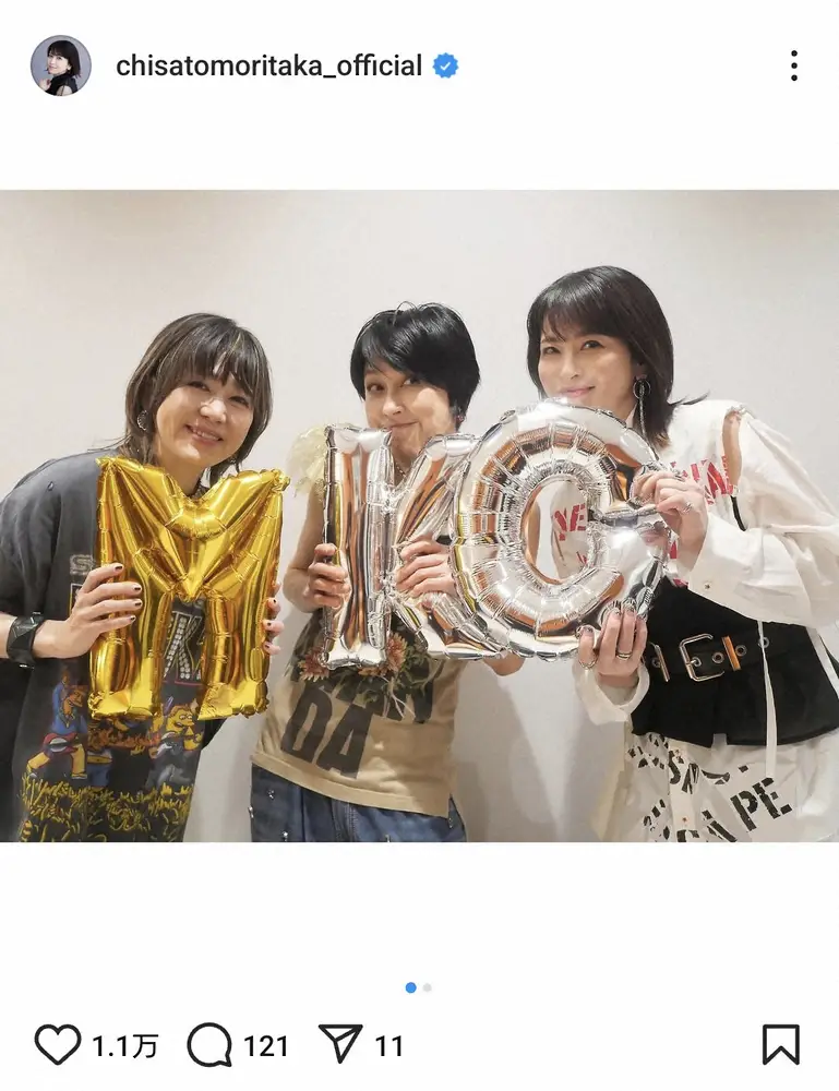 「『岸谷香感謝祭2025』2日間終了しました~ほんとにほんとに楽しかったです!」とバルーンを手にした自身と岸谷、「LINDBERG」の渡瀬マキとの3ショットをアップ。