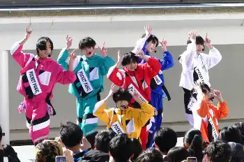 男性7人組アイドルグループ「POCKET PANiC」と、男性デュオ「峯脇」が24日、都内の商業施設内で、ことし1月の結成後初となるリリースイベントを開いた。