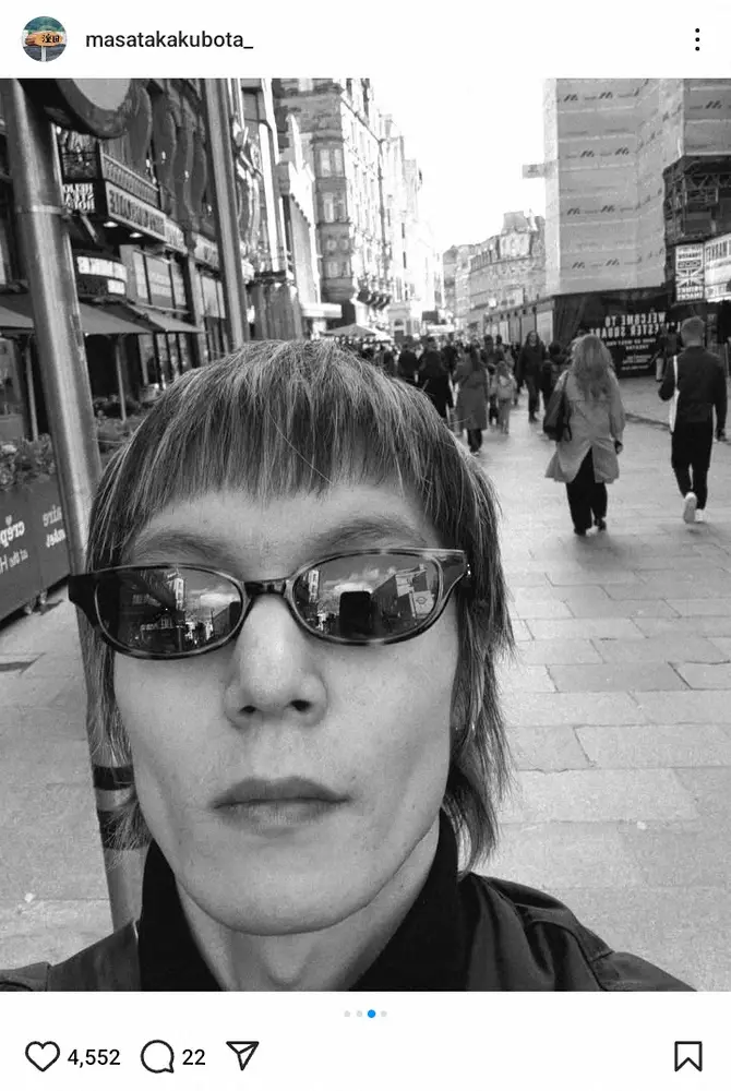 窪田は「In London.」とのみコメント。金髪メッシュに染めたヘアスタイルで、街角でサングラスを掛けた自撮り写真や室内でたたずむ姿を公開した。