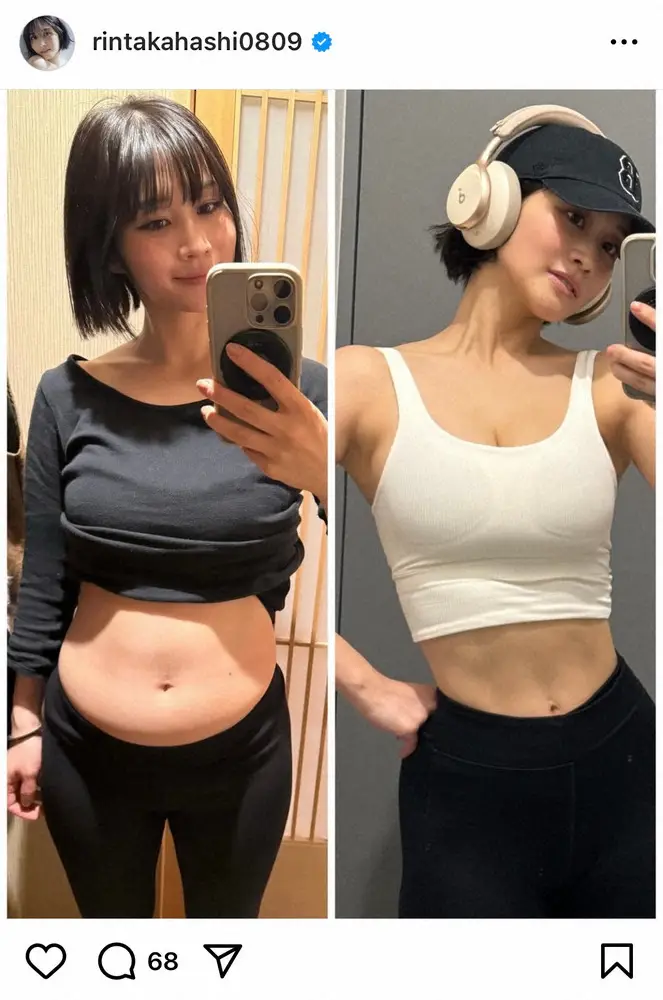 グラビアアイドルの高橋凛(34)が25日までに自身のインスタグラムを更新。トレーニング前後の自身の姿を公開した。