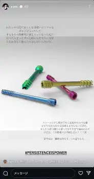 浜崎はストーリーズで「わたしの右足にはこんな可愛いカラフルなボルトが入っていて まぁそりゃ物理的に何にも入ってない左足に比べたらきっとずっと痛いんだろうし完璧に左右差なく使えたりはしないんだけど」と、ボルトの写真を公開した。