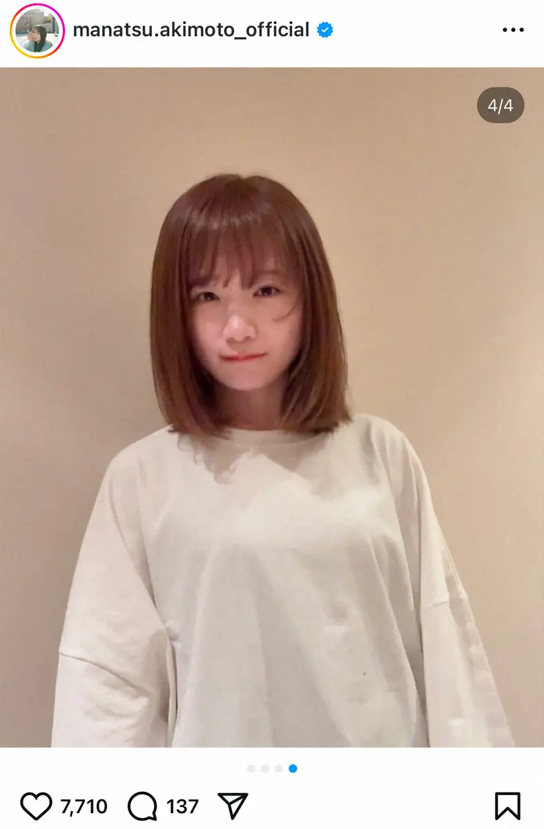 投稿には「ボブもかわいい」「あきもとまなぼぶ、最上級にかわいい」「可愛すぎなんですけども」「アンニュイな感じいいね」「一番似合っててかわいい」など、絶賛の声が寄せられている。