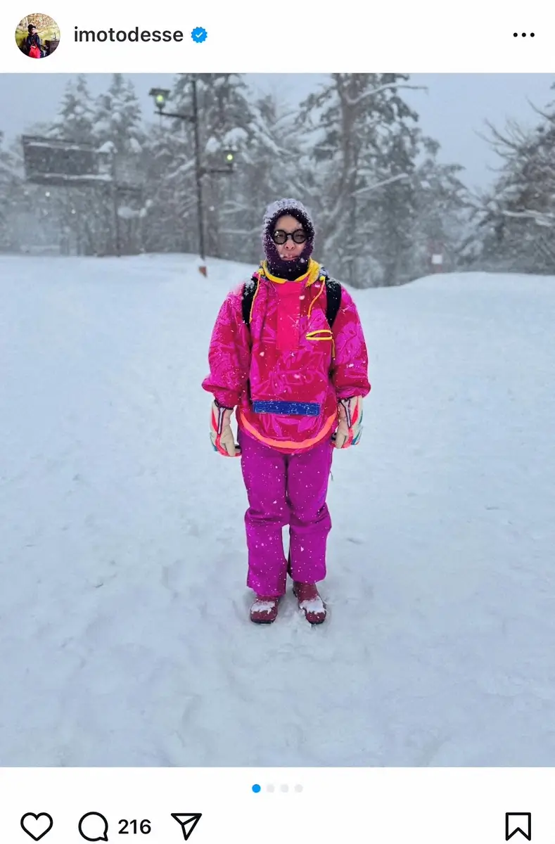 【画像・写真】イモトアヤコ「大雪のタイミングで」実家帰省 ド派手な古着姿が話題に「イケてる」「かっこいい」
