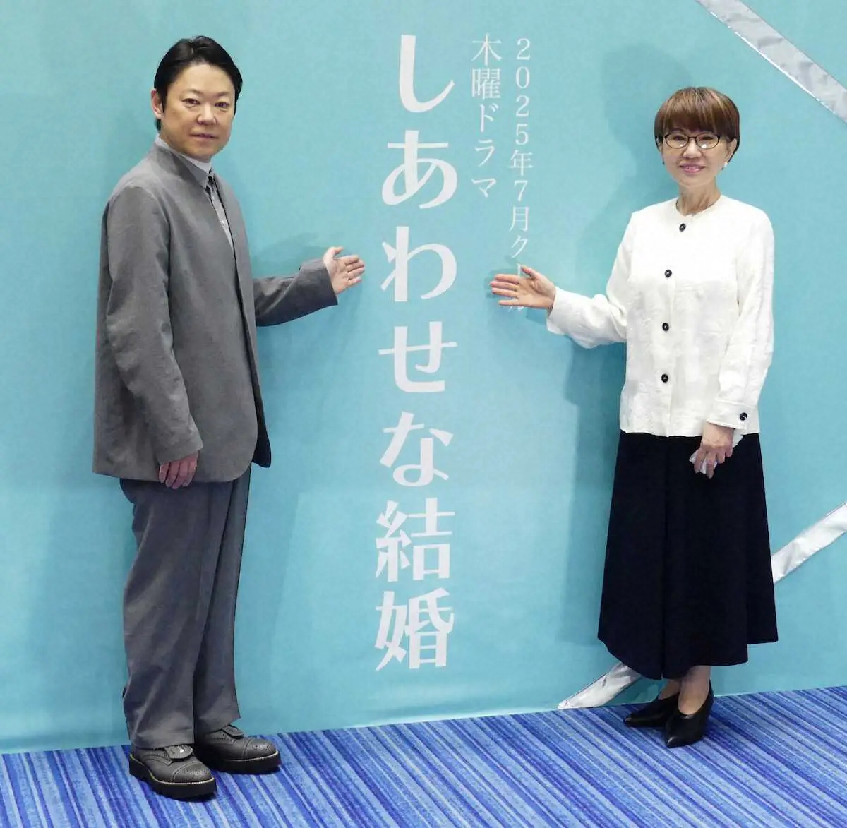 俳優の阿部サダヲ(54)が7月期のテレビ朝日ドラマ「しあわせな結婚」(木曜後9・00)に主演することになり26日、都内で開かれた会見に脚本を務める大石静さんとともに出席した。